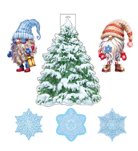 *КБН-16891 Комплект новогодних наклеек. Новогодние персонажи (многоразовые, видны с обеих сторон)