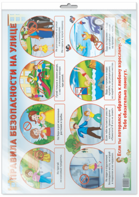 *Демонстрационный плакат А2. Правила безопасности на улице (в индивидуальной упаковке с европодвесом и клеевым клапаном)