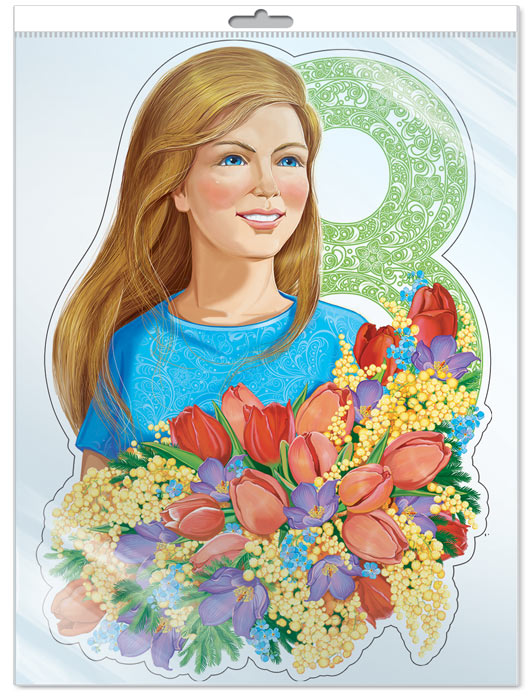 ФБ-13526 Плакат вырубной А2. Девушка с букетом. Восьмерка (с блестками в лаке)