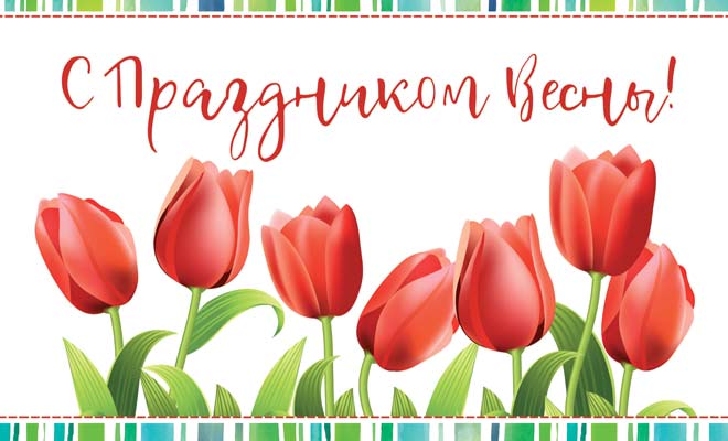 ПМ-13508 Мини-открытка прямоугольная. С праздником весны (пластизоль, формат 140х85 мм)