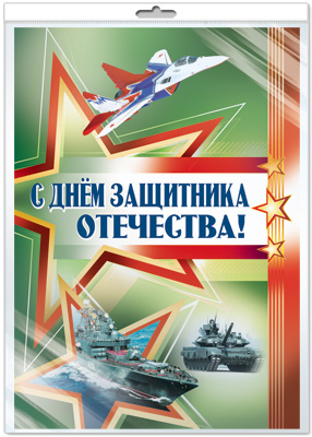 *ПЛ-13206 Плакат А2. С Днем защитника Отечества! (В индивидуальной упаковке с европодвесом и клеевым клапаном)