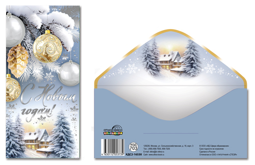 КДС2-16537 Конверт для денег на склейке. С Новым Годом! (серебряная фольга)