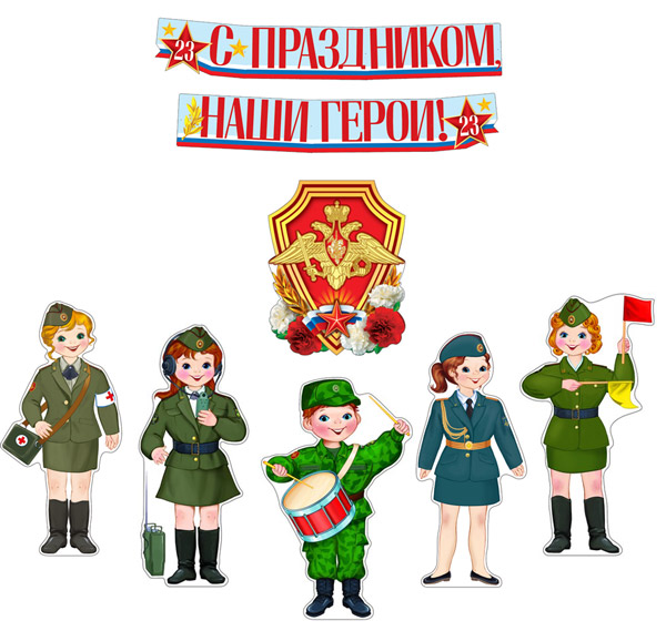 *КБ-17209 Комплект для оформления интерьера. 23 февраля (плакат А3, 5 фигур военных А3 и гирлянда)