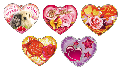 *КМ-13536 Комплект сердечек одинарных (10 шт.) 5 видов по 2 штуки в комплекте