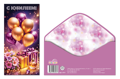 КДС-17680 Конверт для денег на склейке. С Юбилеем! (унисекс, шарики)