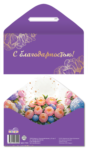 КДС2-17625 Конверт для денег на склейке. С благодарностью! (унисекс, однтонный, золотая фольга)