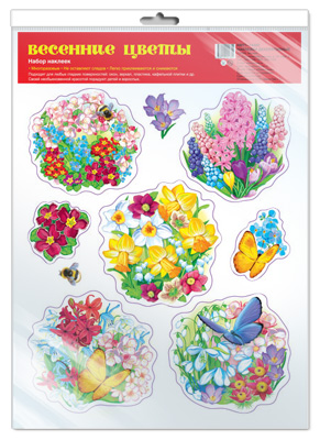 *НМТ1-14483 Набор наклеек А4+ В ПАКЕТЕ. Весенние цветы (УФ-лак, в индивидуальной упаковке, с европодвесом и клеевым клапаном)