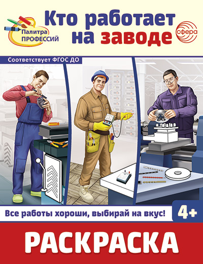 Раскраска. Палитра профессий. Кто работает на заводе (для детей от 4 лет)