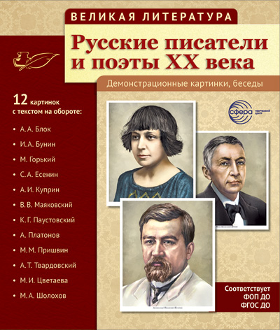 Великая литература. Русские писатели и поэты XX века. 12 демонстр.картинок с текстом (210x250мм)