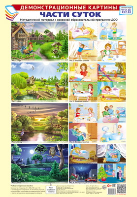 Демонстрационные картины А3. Части суток. Методич. мат-л к ООП ДОО (8 картин)