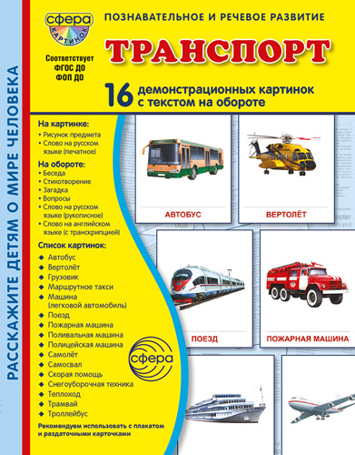 Дем. картинки СУПЕР Транспорт. 16 демонстрационных картинок с текстом В ПАПКЕ (173х220 мм)