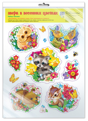 *НМТ1-14477 Набор наклеек А4+ В ПАКЕТЕ. Звери в весенних цветах (УФ-лак, в индивидуальной упаковке, с европодвесом и клеевым клапаном)