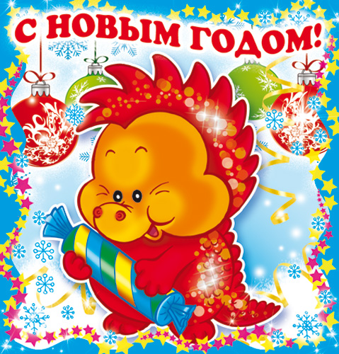 М-4576 Мини-открытка двойная. С Новым годом! Дракончик с конфетой