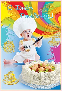 Д-5841 Открытка среднего формата С Днем Рождения! Детская. Текст (золотая фольга)