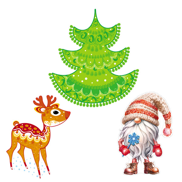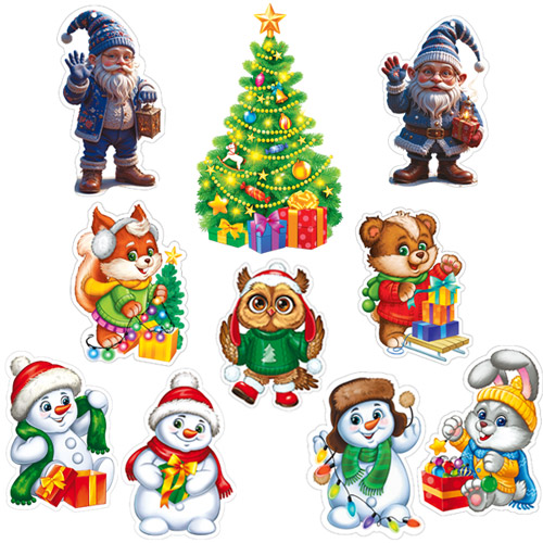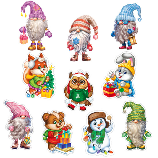 *КМ-17905 Комплект украшений со скотчем. Новогодние персонажи (10 видов в комплекте)