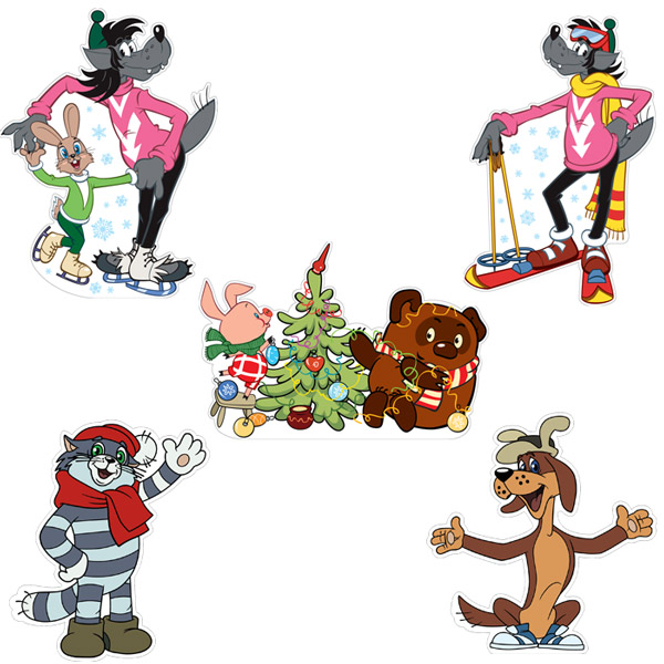 *КМ-17906 Комплект украшений со скотчем. Сказочные персонажи украшают елку (10 видов в комплекте)