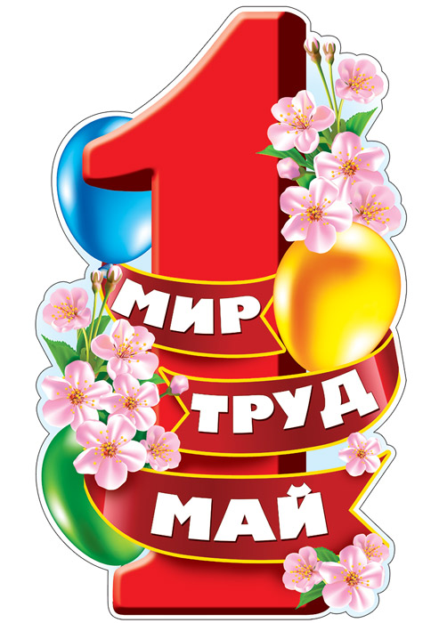 Ф-13297 Плакат вырубной А3+. 1 мая. Мир. Труд. Май (с блестками в лаке) - группа Праздники
