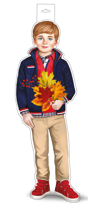 Ф-16217 Плакат вырубной А3. Мальчик с букетом из осенних листьев (двухсторонний, ВД-лак)