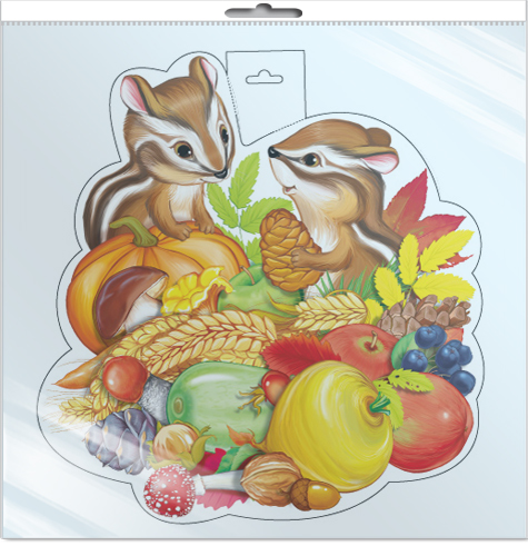 М-16247 Вырубная фигурка. Белочка в дарах осени (двухстороняя, ВД-лак)