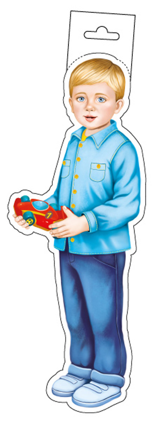 ФМ1-16143 Плакат вырубной А4. Мальчик с синей машинкой (двухсторонний)