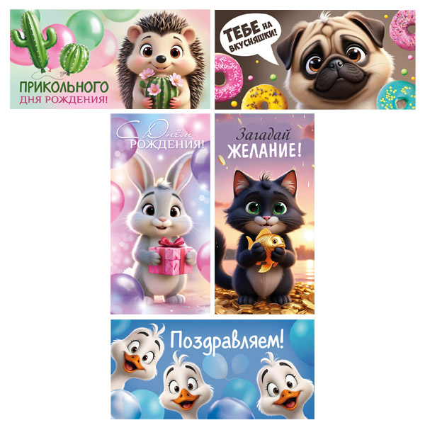 *КД-17919 Комплект конвертов для денег. Зверята поздравляют с Днём рождения (5 шт.)