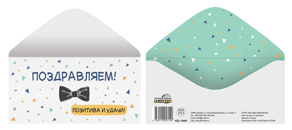 КДС-16800 Конверт для денег на склейке. Поздравляем! Позитива и удачи! (мужской, атрибутика)