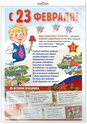 *Демонстрационный плакат А2+ В ПАКЕТЕ. День защитника Отечества (в индивидуальной упаковке, с европодвесом и клеевым клапаном)