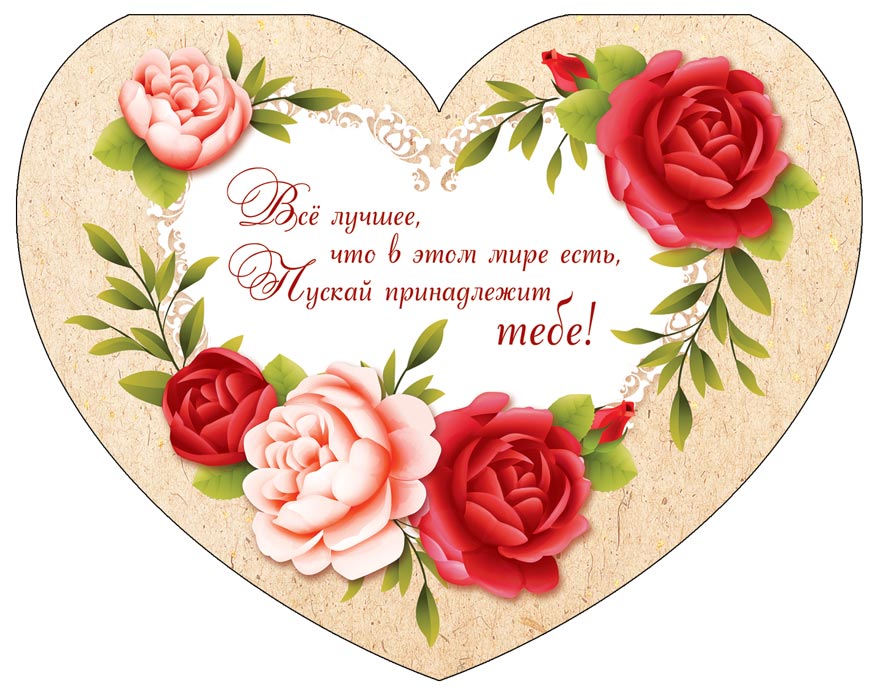 ВА-14394 Валентинка-сердечко большая. Все лучшее... тебе. Выборочный УФ-лак