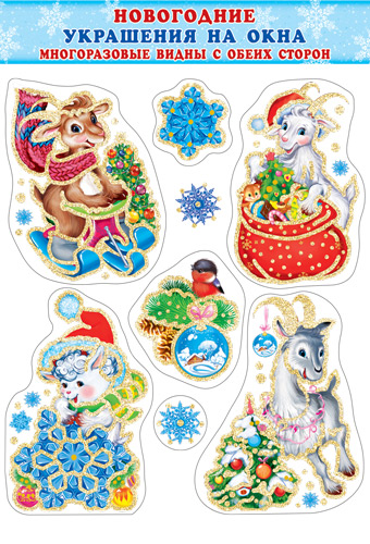 Н-7910 Новогодние наклейки А3+. Козочки (блестки, многоразовые, видны с обеих сторон)
