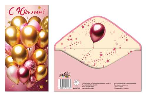 КДС-17680 Конверт для денег на склейке. С Юбилеем! (унисекс, шарики)
