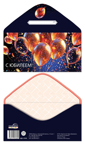 КДС-17676 Конверт для денег на склейке. С Юбилеем! (унисекс, шарики)