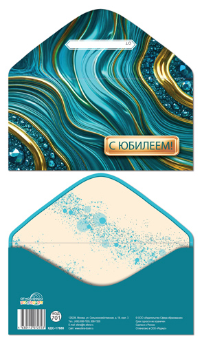 КДС-17688 Конверт для денег на склейке. С Юбилеем! (унисекс, волны, узоры)