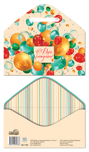 КДС-17684 Конверт для денег на склейке. С Днем рождения! (унисекс, шарики)