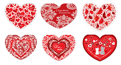 *ВА-15020 Валентинки-сердечки большие, 6 шт.