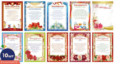 *КШ-14675 Комплект благодарностей (10 шт.: 5 видов по 2 шт.)