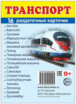 Дем. картинки СУПЕР Транспорт. 16 раздаточных карточек с текстом на обороте (учебно-методическое пособие с комплектом демонстрационного материала 63х87 мм, познавательное и речевое развитие)