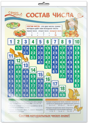*ПО-13368 ПЛАКАТ А3 В ПАКЕТЕ. Математика в 1 классе. Состав числа (в индивидуальной упаковке, с европодвесом и клеевым клапаном)