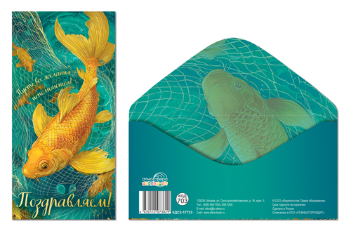 КДС2-17733 Конверт для денег на склейке. Поздравляем! (унисекс, золотая рыбка, золотая фольга)
