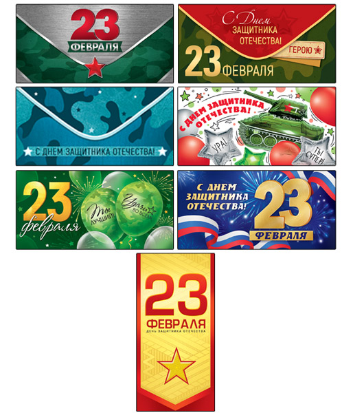 *КБ-17292 Набор мини-открыток на 23 февраля в ассортименте. 100 шт. в шоу-боксе: 10 видов по 10 шт.
