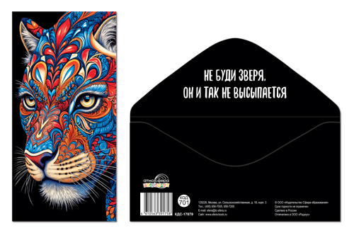 КДС-17879 Конверт для денег на склейке. Без надписи (Тигр)