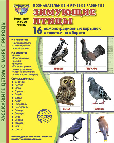Дем. картинки СУПЕР Зимующие птицы. 16 демонстрационных картинок с текстом В ПАПКЕ (173х220 мм)